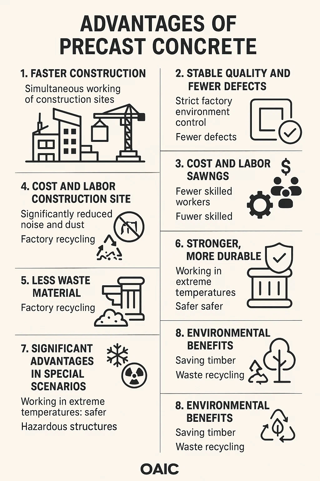 فيما يلي المزايا الأساسية للخرسانة مسبقة الصب: